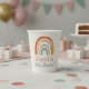 Celebrate in style with this charming baby shower cup, adorned with a soft, hand painted rainbow in warm, earthy pastels. Below the cheerful rainbow arches, the baby’s name and “Baby Shower!” are beautifully featured in a playful, textured font. Perfect for boho inspired, gender-neutral, or modern celebrations, this design blends timeless charm with minimalist sophistication. The gentle colour palette and personal touch make it an ideal addition to any baby shower table, ensuring a coordinated and memorable event for you and your guests.