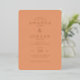 This elegant wedding invitation features a minimalist design with a warm peach colour palette, creating an inviting and sophisticated atmosphere. The layout is clean and balanced, with centred text arranged vertically for easy reading. A classic serif font adds a touch of formality, while ample negative space enhances readability and elegance. Perfect for couples seeking a simple yet refined look, this invitation sets the tone for a memorable celebration.