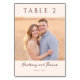 This elegant wedding table card design features a soft, romantic aesthetic with a warm color palette that evokes feelings of love and togetherness. The layout includes a prominent photo area surrounded by tasteful typography, creating a balanced composition perfect for capturing special moments. With its gentle tones and sophisticated style, this design is ideal for couples looking to add a touch of elegance to their big day. It’s customizable, allowing you to personalize it with your own details while maintaining the overall charm and warmth.