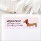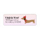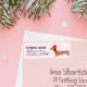 Imagine a festive return address label featuring a jolly dachshund with its tiny legs dancing with holiday cheer, as it mischievously wags its tail. Above this merry scene, your address is written in cheerful, curvy script, making every envelope you send out a tiny sleigh of dachshund delight! 🐕🎄✉️