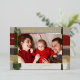 Abstract brushstrokes in warm rustic earth tones of rust, brown, sage green and tan with real gold foil line highlights, photo template, custom Merry Christmas text graphic and editable text fields.