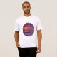 My acrylic sunset painting on the front of a sample men's T-shirt. It was done on a wood panel. A composite creation based on my studies of ocean waves and how to harmonise the water and sky. A love for being on the beach is why this subject was chosen. On the back is a metal 3-D gecko wall hanging photo that I shot when we stayed in Florida. My website and other info are optional additions. I would appreciate that I be credited when you use my works on your customised items. This style of men's T-shirt is the only one without a colour background showing through. But you can select other styles of shirt here that offer a white background on assorted coloured T-shirts.