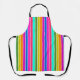 This apron has a design of spring stripes in pink, yellow, orange, green, blue, and purple.