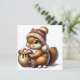 Warm Squirrel with Hot Cocoa and Winter Hat Holiday Card