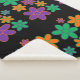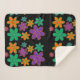 Want to blundle up? Grab this groovy 70s style flower power blanket! Toasty warm for snuggling, on an aeroplane, driving, on any crisp cool day. Black background on front (white on obverse) with colourful 70s style flowers in orange, purple, and teal. Great as a throw blanket or any time you need extra warmth.