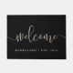 A great gift for newlyweds or new homeowners, our personalised welcome doormat in chic and durable black features "welcome" in modern, elegant handwritten calligraphy script. Personalise with your family name and year established in classic block lettering.