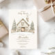 Celebrate the arrival of a little one with this cosy winter baby shower design. A charming hand-painted cottage with a glowing fireplace sits nestled between snow-covered pines, creating a peaceful woodland setting. The soft taupe tones and minimal Nordic aesthetic bring warmth and rustic elegance to your seasonal celebration.