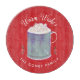"Warm Wishes" christmas cutting board featuring illustrated peppermint hot cocoa or peppermint mocha illustration on custom colour background with name.