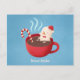 Warm Wishes Snowman in Cocoa Cup Pun Postcard