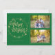 Warm Wishes & Stars Green & Gold 2 Photos Holiday Card