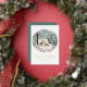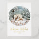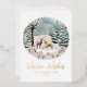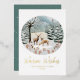 Elegant Christmas card featuring a watercolor winter scene complete with snowy pine trees, deer, winter foliage, and snow on the ground. "Warm Wishes" is displayed in a gold foil script with your name and the year shown below. The non-photo holiday card reverses to display a teal green background with a white snowy design.