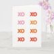 This greeting card shows eight “XO” letters arranged in a 4x2 grid on a white background. Each “XO” is set in a simple, thick letter style, making the shapes easy to read at a glance. The colors shift from soft blush pink to warm orange, then deeper terracotta, and finally a coral red, moving across the grid like a gentle build of feeling. There aren’t any characters or objects, just the repeating “XO,” which keeps the focus on hugs and kisses. The only text is “XO,” and it sits centered in each grid space, with no extra words around it. It feels meaningful because the gradual color change can match how love grows—from quiet care to stronger, heartfelt affection 🥰. This is a sweet choice for a partner or a close friend when you want to say a lot without writing a long note ❤️.
