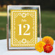 This beautiful papel picado inspired wedding table number card features an ornate frame in white, a warm yellow background, and festive typography. This elegant yet modern design is a fabulous choice for a Latinx wedding, rehearsal dinner, engagement party, or bridal shower. See coordinating items in the collection...