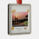 Modern Christmas ornament featuring a simple and fun design with a starfish, palm tree, coconut drink and seashells accenting your favourite beach photo along with optional text.