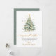 Elegant Modern Calligraphy Warmest Wishes Script Christmas Tree Non Photo Christmas Cards. This festive simple Holiday cards features a watercolor christmas tree with decoration gold balls and confetti and a „Warmest Wishes” greeting text which is written in a nice hand lettered font type in gold and white. On the reverse side golden glitter snow or sparkling gold confetti on dusty green background. This festive Custom Personalised Cards are a great way to remind loved ones that you're thinking of them this Winter Holiday Season.