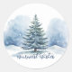 Warmest Wishes Snow Covered Evergreen Tree Classic Round Sticker