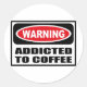 Warning ADDICTED TO COFFEE Sticker you can customise at www.WarningSignShirts.com and features a red and black warning sign and ADDICTED TO COFFEE in bold black letters to warn the world. You can also customise your own warning sign Sticker with the text you want.