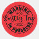 Warning Besties Trip in Progress Black on Red Classic Round Sticker