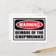 Warning BEWARE OF THE CHIPMUNKS Postcard you can customise at www.WarningSignShirts.com and features a red and black warning sign and BEWARE OF THE CHIPMUNKS in bold black letters to warn the world. You can also customise your own warning sign Postcard with the text you want.