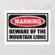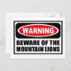 Warning BEWARE OF THE MOUNTAIN LIONS Postcard