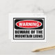 Warning BEWARE OF THE MOUNTAIN LIONS Postcard you can customise at www.WarningSignShirts.com and features a red and black warning sign and BEWARE OF THE MOUNTAIN LIONS in bold black letters to warn the world. You can also customise your own warning sign Postcard with the text you want.