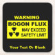 A black and yellow warning sign with text reading, "WARNING, BOGON FLUX, MAY EXCEED SAFETY LIMIT." A radioactive material warning symbol also appears. Add your own additional text. The bogon is an elemental particle which carries the property of bogosity, or being bogus (i.e., fake of bad). All humans are natural low-level bogons emitters. Emission levels fluctuate over time. Politicians, other individuals such as used car salesmen, are high level sources of bogons. When such individuals emit extremely high levels of bogons, as when making campaign promises, a bogon flux may occur. A bogon flux can be very dangerous to those in the area. Bogon was originally hacker jargon having to do with bogus addresses on a computer network.