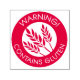 Warning Contains Gluten Celiac Wheat Allergy Symbol Self Inking Stamp. Choose a variety of ink colours. Image of gluten and or wheat inside a circle with text stating WARNING CONTAINS GLUTEN. Label baked goods with a gluten or wheat celiac or allergen warning to alert those who eat gluten free. Designs by Lil Allergy Advocates www.lilallergyadvocates.com