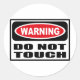 Warning DO NOT TOUCH Sticker you can customise at www.WarningSignShirts.com and features a red and black warning sign and DO NOT TOUCH in bold black letters to warn the world. You can also customise your own warning sign Sticker with the text you want.