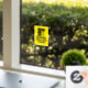 A window cling sign for households with a smart doorbell. The design features a graphic of a doorcam with symbols for video and audio. The text reads “Warning Doorbell Camera In Operation” and “Video And Audio Recording”. An eye-catching design with black text on a yellow background.