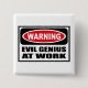 Warning EVIL GENIUS AT WORK Button you can customise at www.WarningSignShirts.com and features a red and black warning sign and EVIL GENIUS AT WORK in bold black letters to warn the world. You can also customise your own warning sign Button with the text you want.