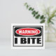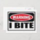 Warning I BITE Postcard you can customise at www.WarningSignShirts.com and features a red and black warning sign and I BITE in bold black letters to warn the world. You can also customise your own warning sign Postcard with the text you want.