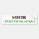 WARNING, I BRAKE FOR ALL ANIMALS BUMPER STICKER