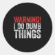 Warning I Do Dumb Things Sarcastic Shirt Classic Round Sticker