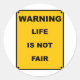 Warning ~ Life Is Not Fair ~ Spoof Warning Sign Classic Round Sticker