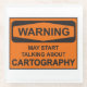 Warning May Start Talking About Cartography Glass Coaster