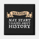 Warning! May Start Talking About History. A funny history-themed design Christmas or birthday gift for history lovers, history buffs, history students, history majors, history geeks, history nerds, historians and history teachers and professors. Are you a history buff? Are you crazy about history and love to talk about it? If you love historical fiction, books, movies, or reading about history, this funny history humour design is for you!