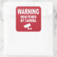 Warning: Monitored by Camera to warn that security cameras in use in your store, business, or home. Place stickers to warn would-be shoplifters that they will be watched on camera. Stickers alone can also deter problems before they happen. Words stand out white on red.