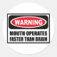 Warning MOUTH OPERATES FASTER THAN BRAIN Sticker