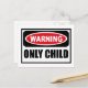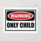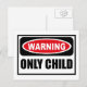 Warning ONLY CHILD Postcard