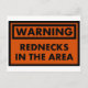 This design features a bright orange sign with a cautionary message to warn folks about Rednecks being the area. We figure people should be warned about such things!