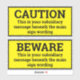 Two cautionary warning signs. Change the wording to display your own message on each. Size 8 inches wide. Construction site warning signs.