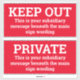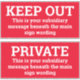 Two warning signs. Change the wording to display your own message on each. Very large size. 14 inches wide.