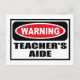 Warning TEACHER'S AIDE Postcard