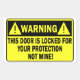 Warning This Door Is Locked For Your Protection Rectangular Sticker