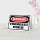 Warning YOUNGEST CHILD Greeting Card you can customise at www.WarningSignShirts.com and features a red and black warning sign and YOUNGEST CHILD in bold black letters to warn the world. You can also customise your own warning sign Greeting Card with the text you want.