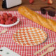 Warp Check Orange Checked Pattern. Cool contemporary retro geometric warped chequered pattern. By Kierkegaard Design Studio.