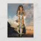 Fantasy card of a beautiful warrior elf with a sword and snake winded around the sword.