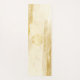 Exercise motivation mat with warrior poses and boho typography on golden light ink graphic background. Spirit mind body symbol on back.