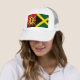 trucker hats designed with the warrior and Jamaican flags
