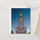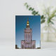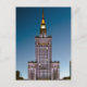 The iconic Palace of Culture and Science (PKiN) in Warsaw, Poland lit up at night.